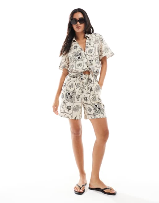 Object – Schlupf-Shorts mit schwarz-weißem Muschelmuster, Kombiteil