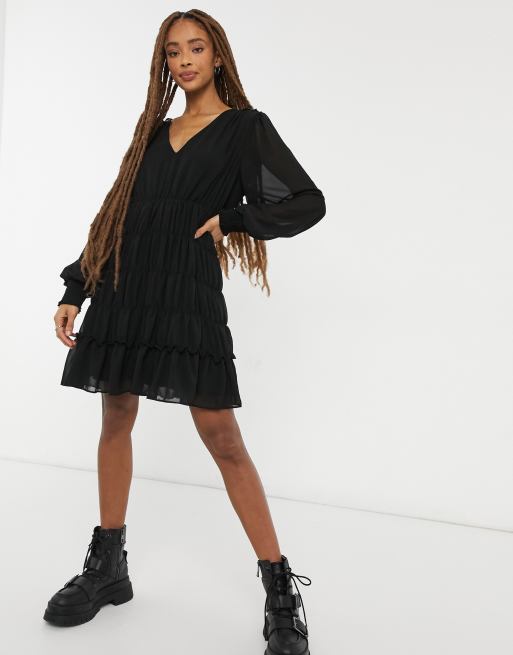 Object – Schwarzes Minikleid mit gesmoktem Detail