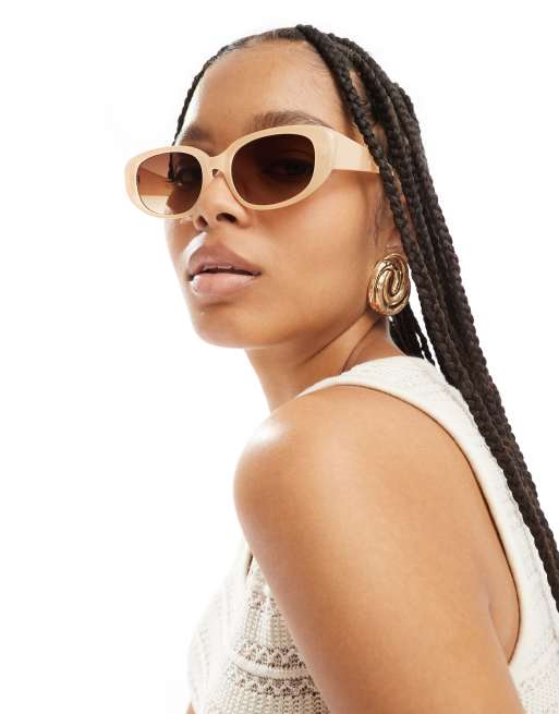 Object – Sonnenbrille mit ovalem Gestell in Beige
