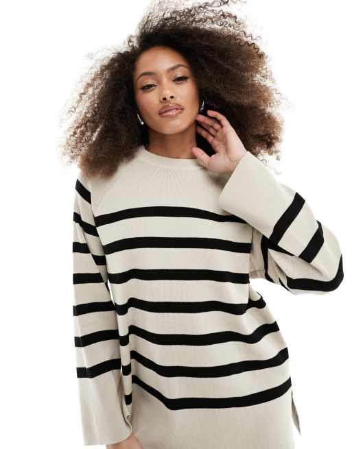 Object – Strickpullover in Creme mit Streifen in Schwarz und Rundhalsausschnitt