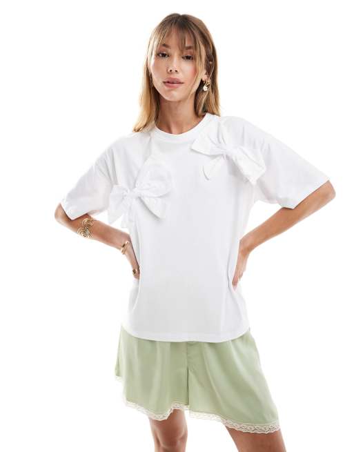 Object – T-Shirt in Weiß mit auffälligen Schleifen