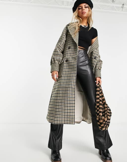 Object – Zweireihiger, braun karierter Midi-Mantel - BROWN