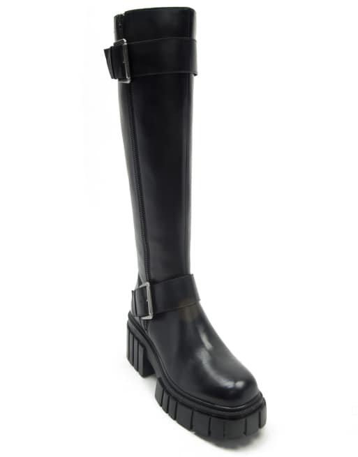 Off The Hook – Finchley – Lederstiefel in Schwarz mit hohem Schaft, Schnallenriemen und Reißverschluss