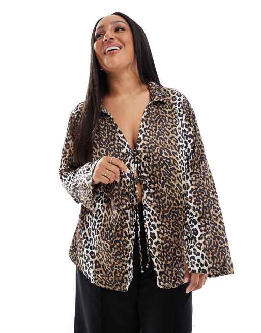 ONLY Curve – Bluse mit Leopardenmuster und gebundener Vorderseite