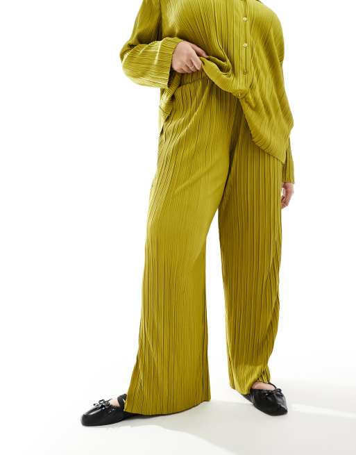 Only Curve – Exklusive, plissierte Hose in Grün, Kombiteil