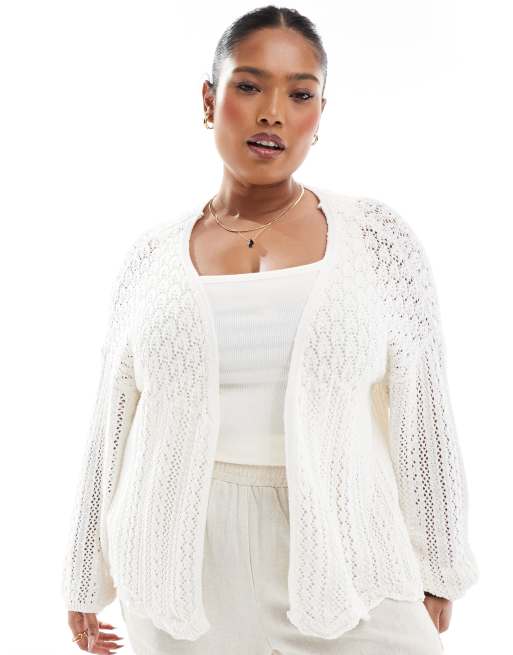 ONLY Curve – Gehäkelte Strickjacke in Weiß