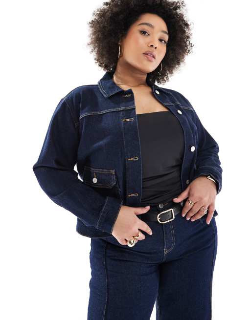 ONLY Curve – Jeansjacke in dunkelblauer Waschung