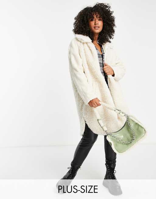 Only Curve – Midimantel aus Teddyfell in Creme
