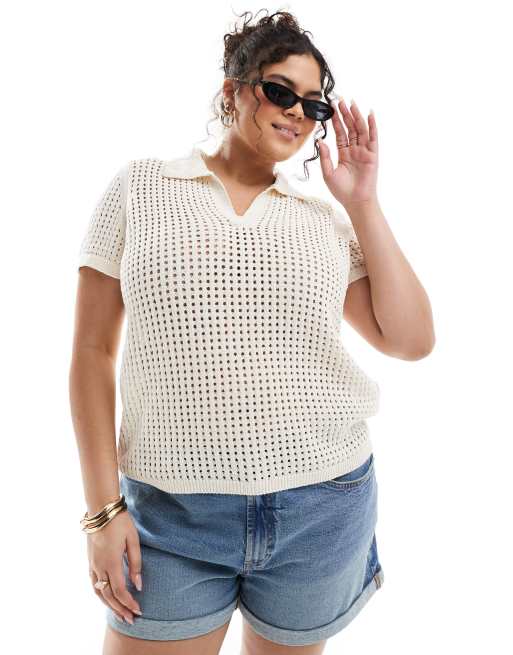 ONLY Curve – Polohemd in Cremeweiß mit Lochmuster