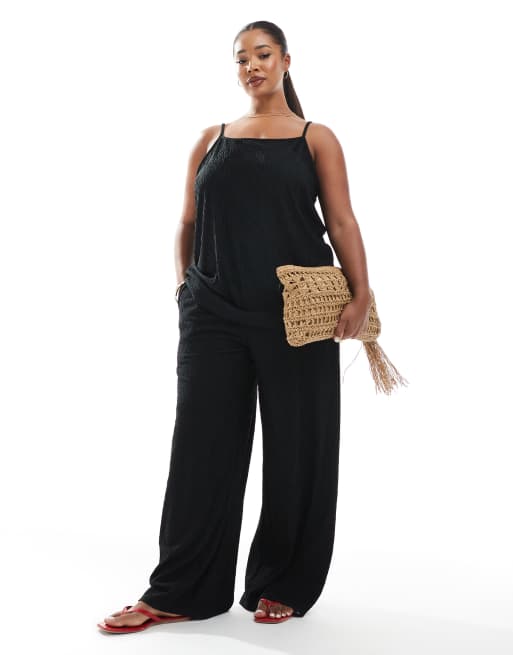 ONLY Curve – Set in Schwarz mit Struktur, bestehend aus Oberteil und Hose