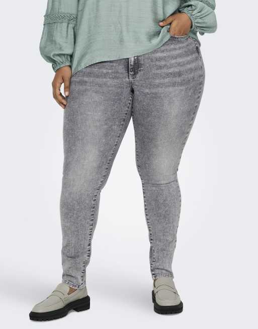 ONLY Curve – Skinny Fit Denim-Jeans in Mittelgrau