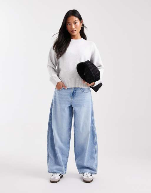 Only Petite – Taylor – Jeans in Hellblau mit abgerundetem Beinschnitt und hohem Bund