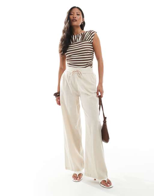 ONLY Petite – Weit geschnittene Hose in beiger Leinenoptik