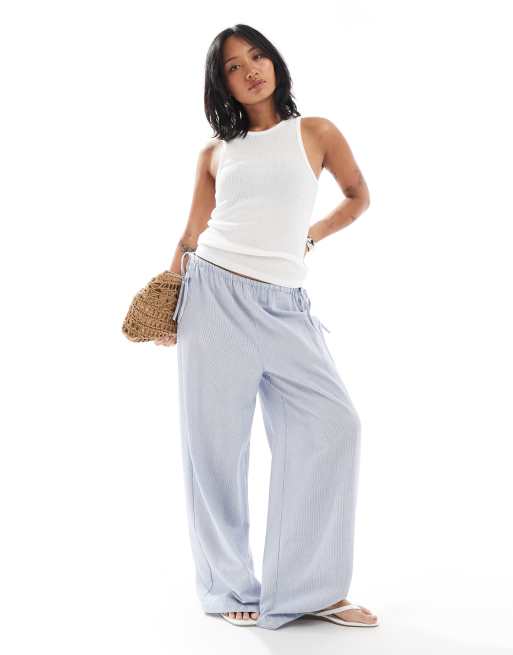 ONLY Petite – Weit geschnittene Hose in gestreiftem Blau mit Kordelzugbund