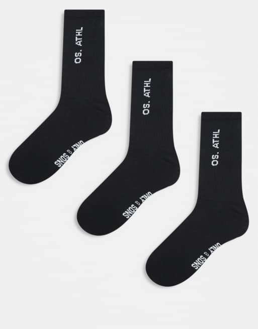 ONLY & SONS – 3er-Pack Socken in Schwarz mit weißem Text