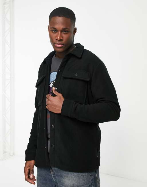 Only & Sons – Fleece-Hemdjacke in Schwarz, Kombiteil