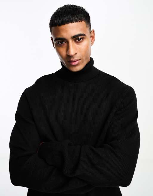 Only & Sons – Gerippter Rollkragenpullover in Schwarz