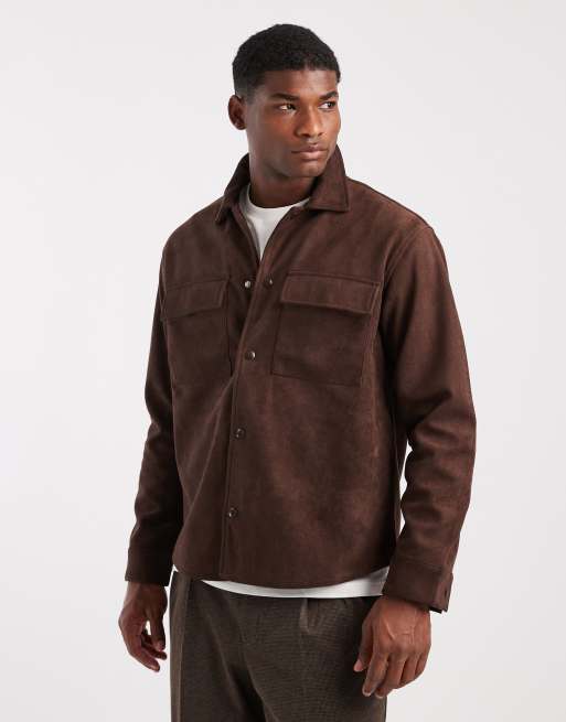 ONLY & SONS – Hemdjacke aus Wildlederimitat in Schokobraun