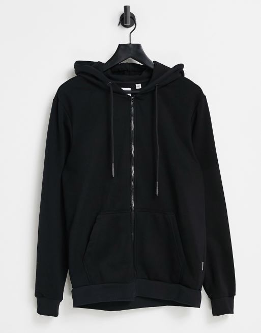 Only & Sons – Kapuzenjacke mit durchgehendem Reißverschluss in Schwarz