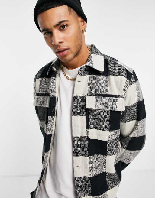 Only & Sons – Karierte Hemdjacke in Navy und Beige