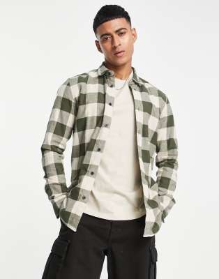 Only & Sons – Kariertes Holzfällerhemd in Khaki und Beige