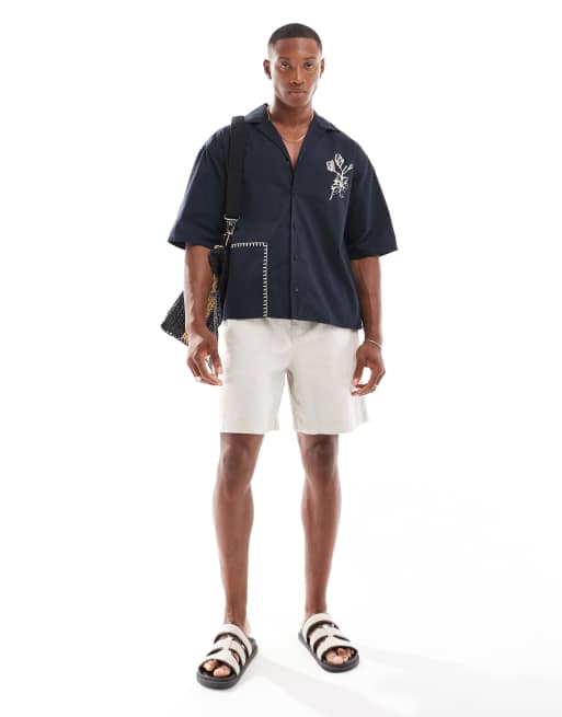 ONLY & SONS – Kastiges Hemd in Marineblau mit Reverskragen und Ziernähten