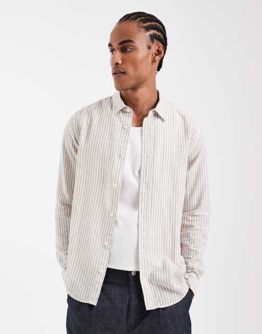 ONLY & SONS – Langärmliges Hemd aus Leinenmix in Beige gestreift