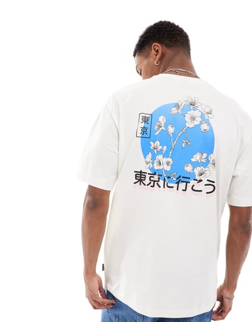 Only & Sons – Lässig geschnittenes T-Shirt in Weiß mit japanischem Blütenprint am Rücken