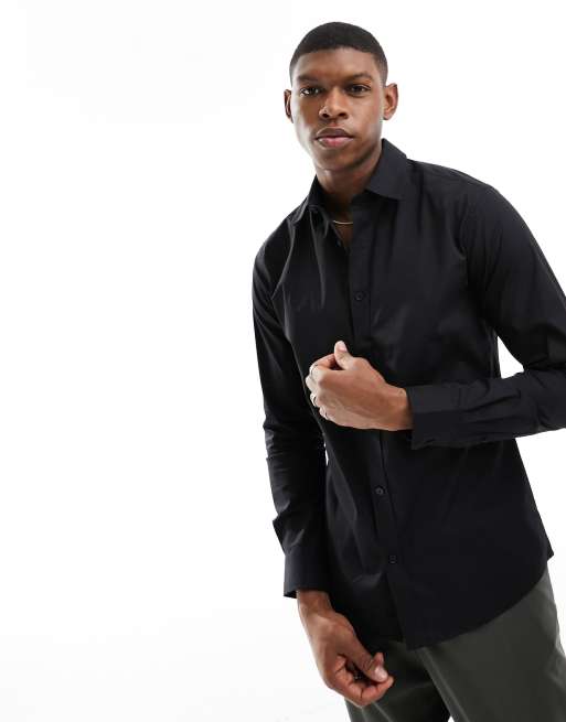 Only & Sons – Leicht zu bügelndes Slim Fit Oxford-Hemd in Schwarz