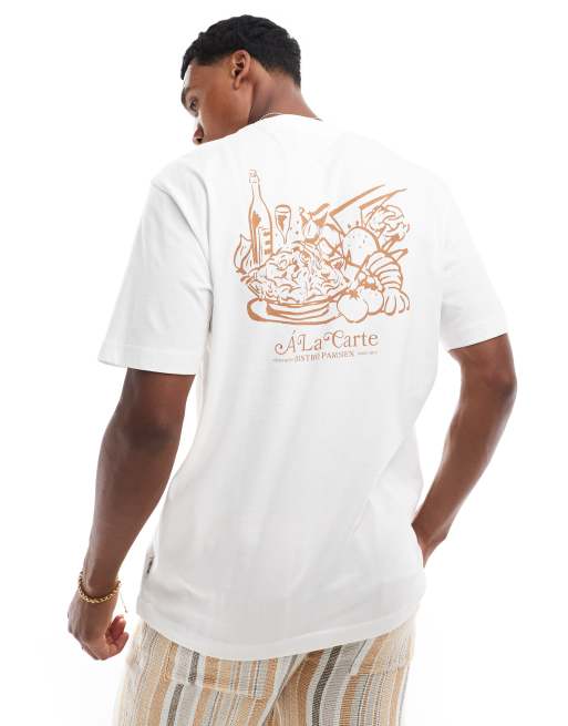 Only & Sons – Locker geschnittenes T-Shirt in gebrochenem Weiß mit „A La Carte“-Rückenprint