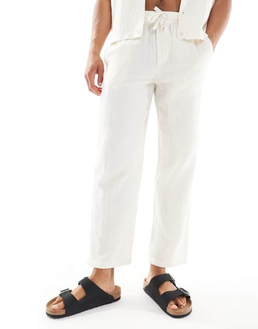ONLY & SONS – Locker sitzende Hose in Creme mit Strukturmuster, Kombiteil