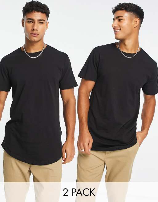 Only & Sons – Longline-Shirt mit abgerundetem Saum in Schwarz im 2er-Pack