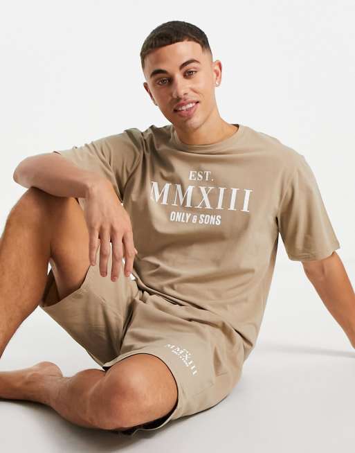 Only & Sons – Loungewear – Set mit T-Shirt und Shorts in Beige