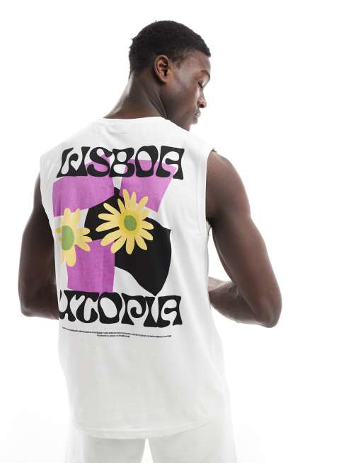 ONLY & SONS – Oversize-Trägertop in Weiß mit „Lisboa“-Rückenprint