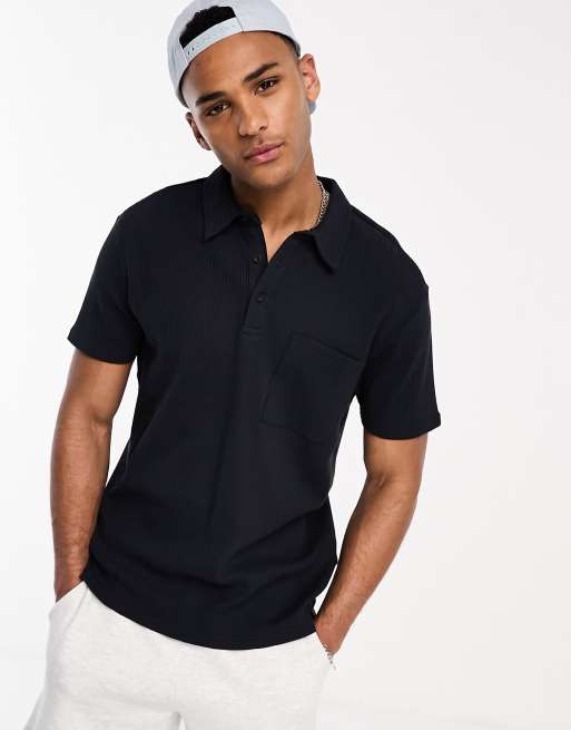 Only & Sons – Polohemd in Marineblau mit Waffelstruktur