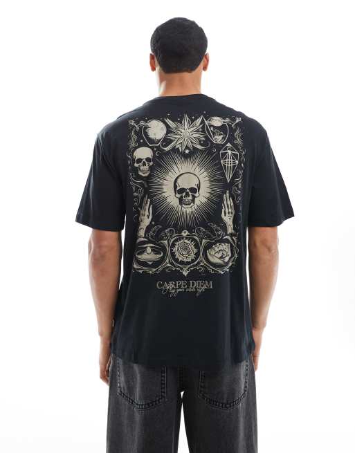 ONLY & SONS – Relaxed Fit T-Shirt in Schwarz mit Totenkopf-Rückenprint
