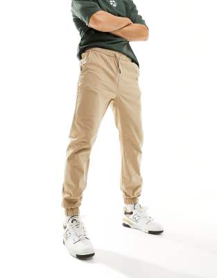 Only & Sons – Schmal geschnittene Chinohose in Beige mit Bündchen