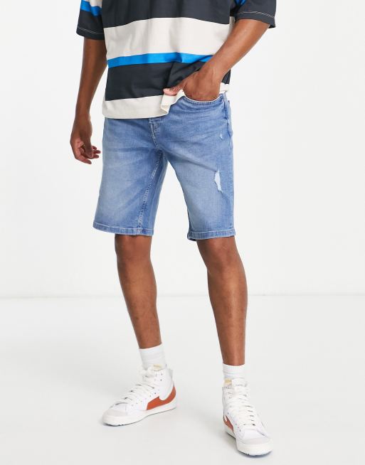 Only & Sons – Schmal zulaufende Jeansshorts in Hellblau mit Zierrissen