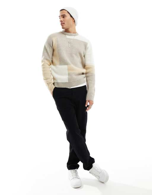 Only & Sons – Strickpullover mit Rundhalsausschnitt und abgestimmtem Farbblockmuster