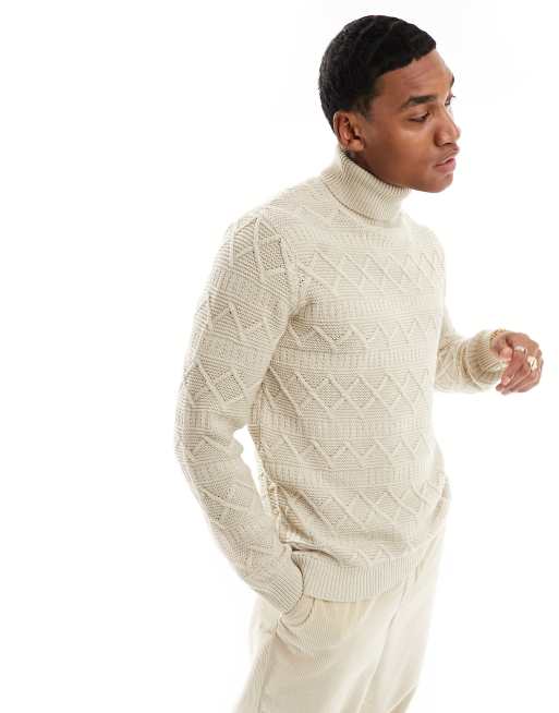Only & Sons – Texturierter Rollkragenpullover in Beige