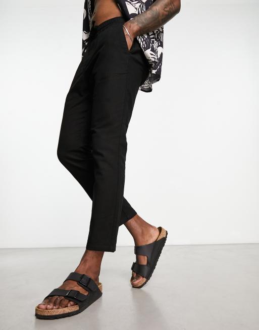 ONLY & SONS – Verkürzte Hose aus Leinenmix in Schwarz