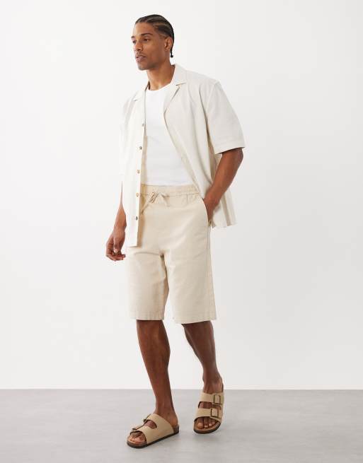 ONLY & SONS – Weit geschnittene Shorts in Beige mit Leinenanteil
