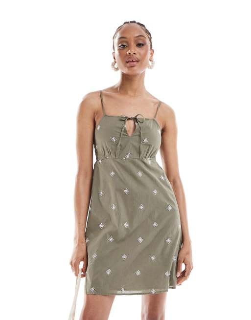 ONLY Tall – Mini-Trägerkleid in Khaki mit Stickerei
