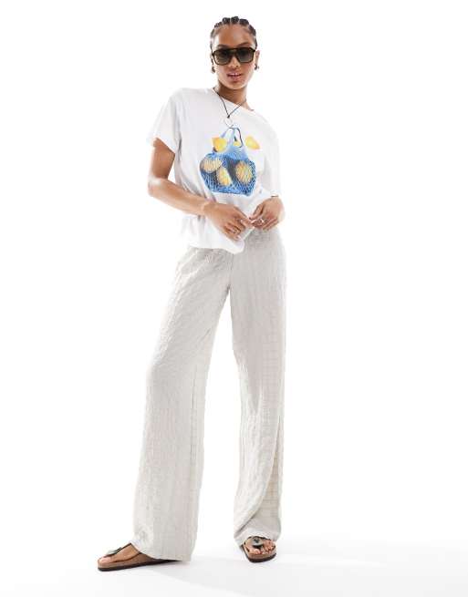 ONLY Tall – Seersucker-Hose in Steinbeige mit weitem Bein