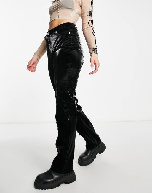 Neon & Nylon – Hose aus schwarzem Vinyl mit hohem Bund und geradem Schnitt