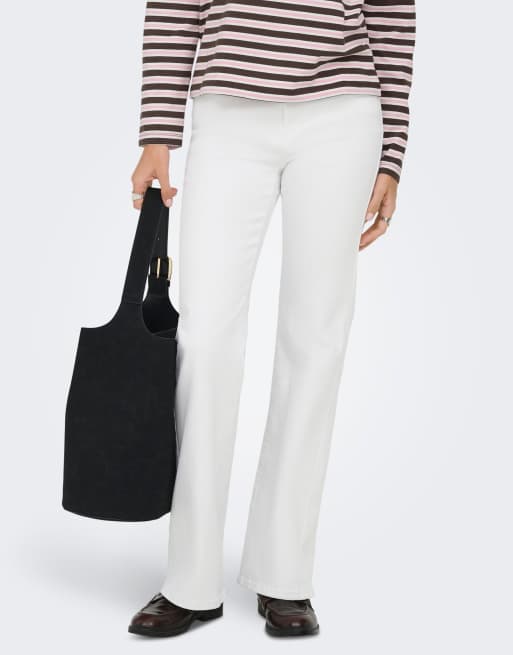 ONLY – Ausgestellte Jeans aus weißem Denim