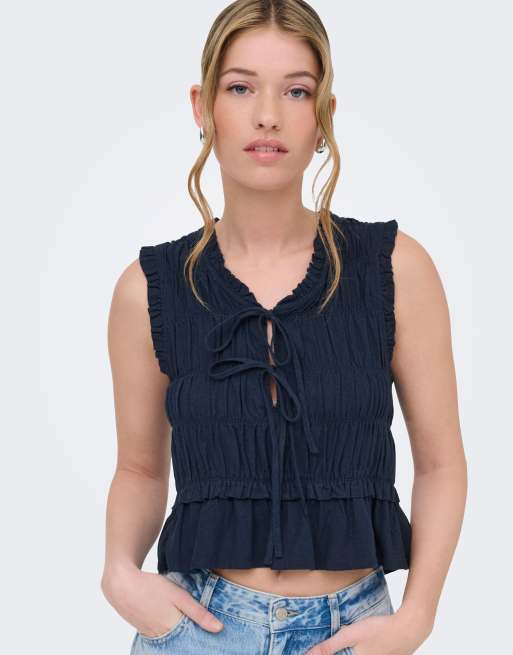 ONLY – Bluse in Blazer-Marineblau