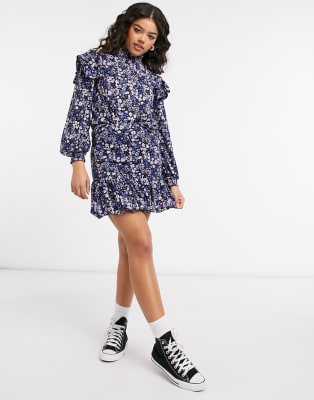 Only – Bluse und Minirock mit Blumenmuster in Lila und Blau, Kombiteil