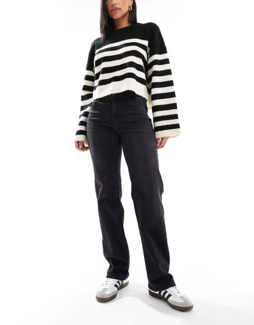 ONLY – Blush – Jeans in verwaschenem Schwarz mit geradem Schnitt