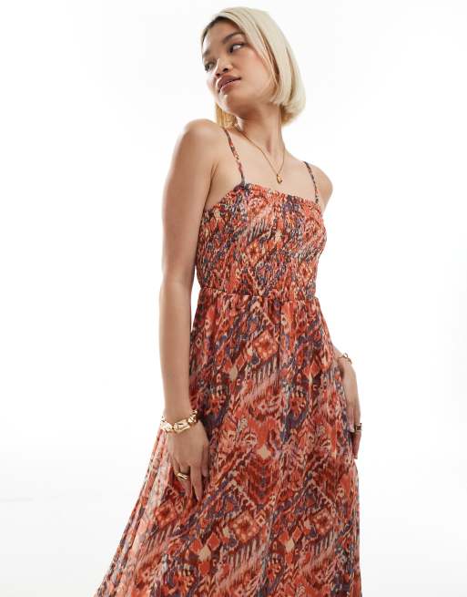 ONLY – Camisole-Maxikleid in Rot mit Ikat-Muster